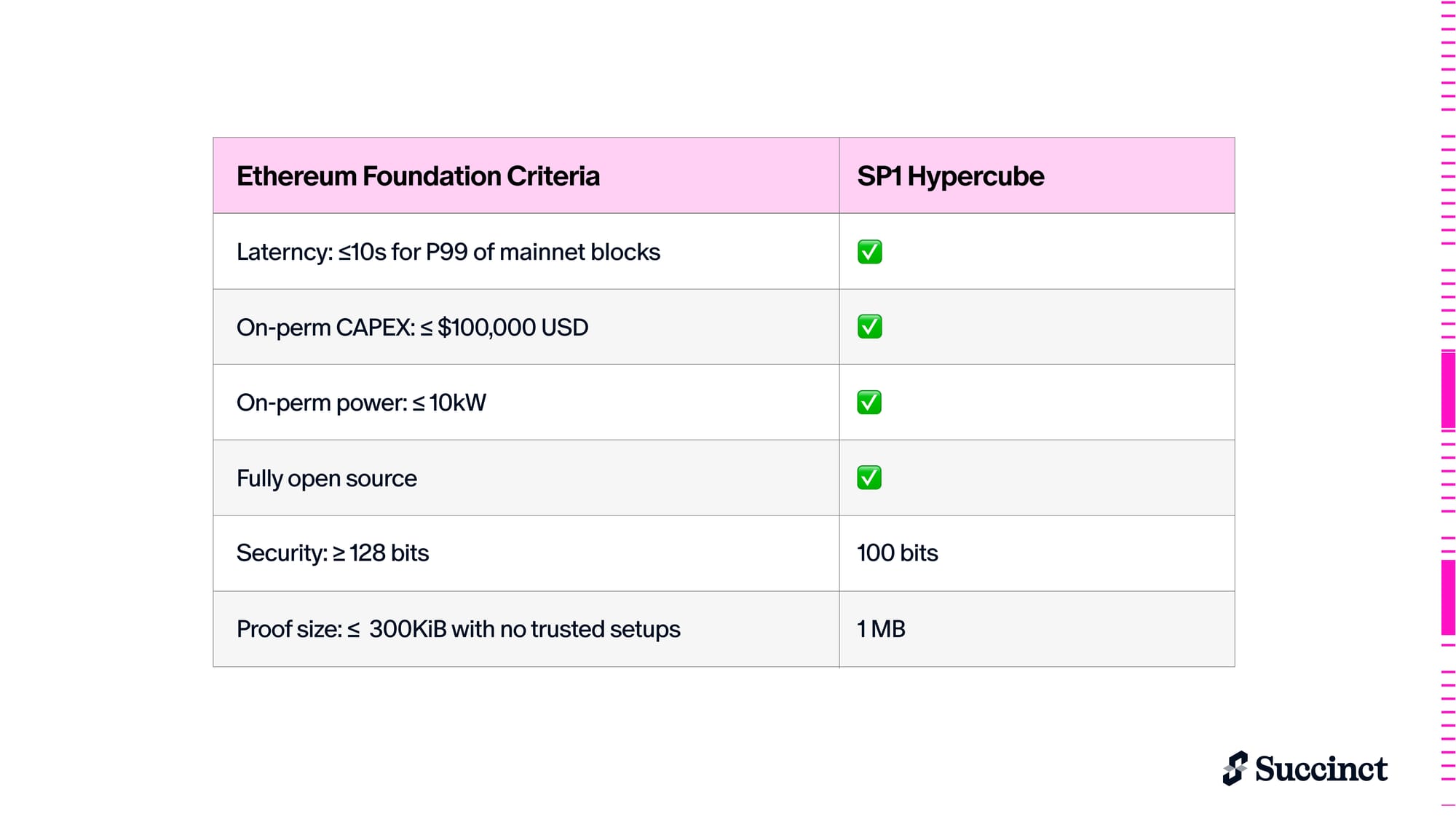 The Ethereum Foundation set an ambitious vision for L1 zkEVM with clear criteria for real-time proving and security. SP1 Hypercube is already outpacing the roadmap. Real-time proving is no longer a research goal. It’s now production-ready infrastructure, available to any developer.