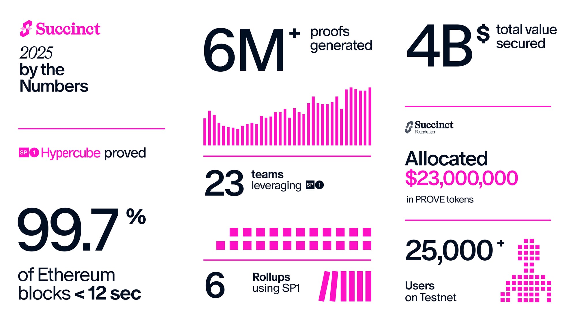 2025 was about delivering on our promises. We set out to scale Ethereum with the most advanced ZK proof system on the market. And we did. From proving Ethereum in real time to fully functional products, ecosystem integrations, and the launch of our decentralized prover network, Succinct led from the front.
