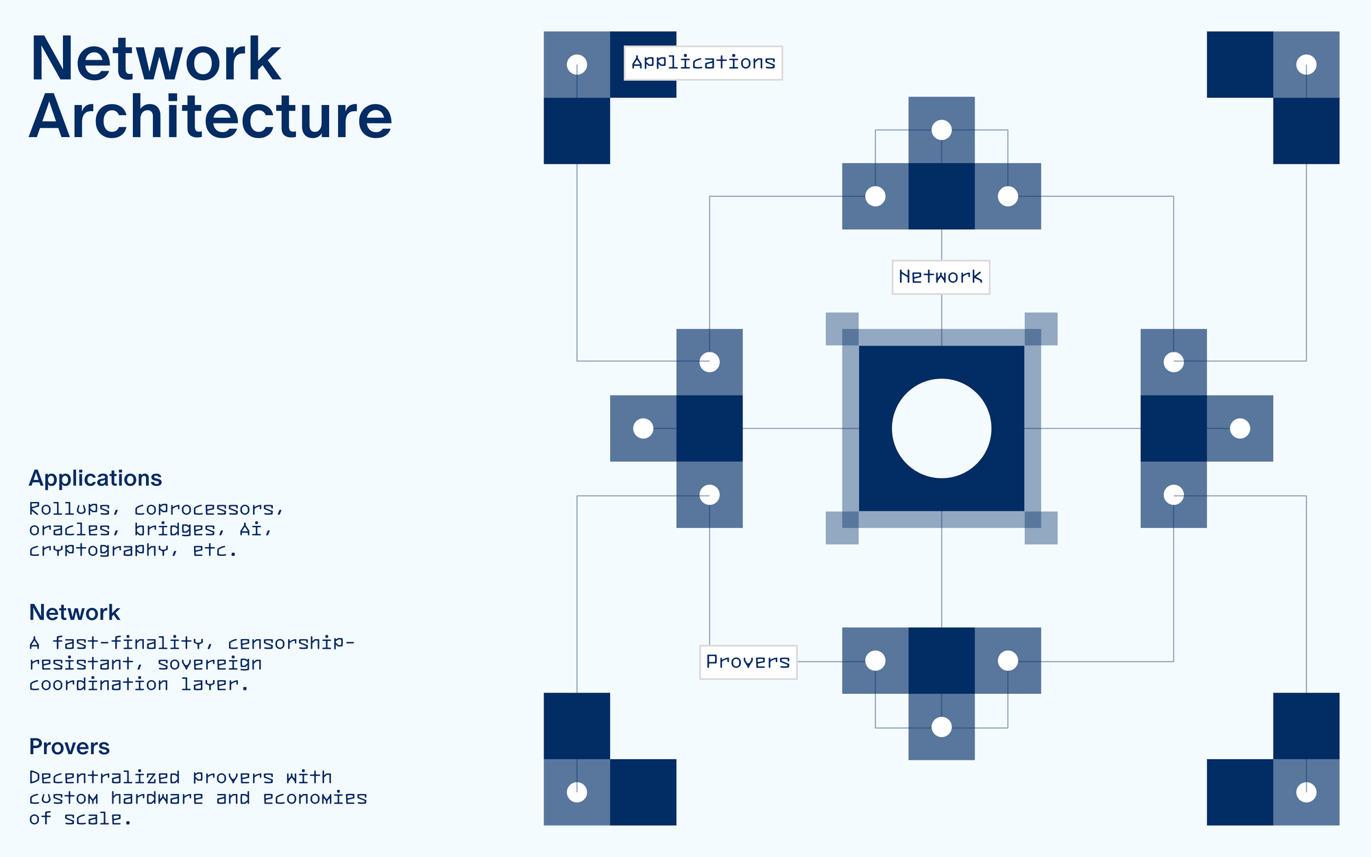 - For applications: outsource your proving to a decentralized network of provers with strong liveness and censorship-resistance guarantees, that provides the cheapest pricing for proofs due to economies of scale of the network.