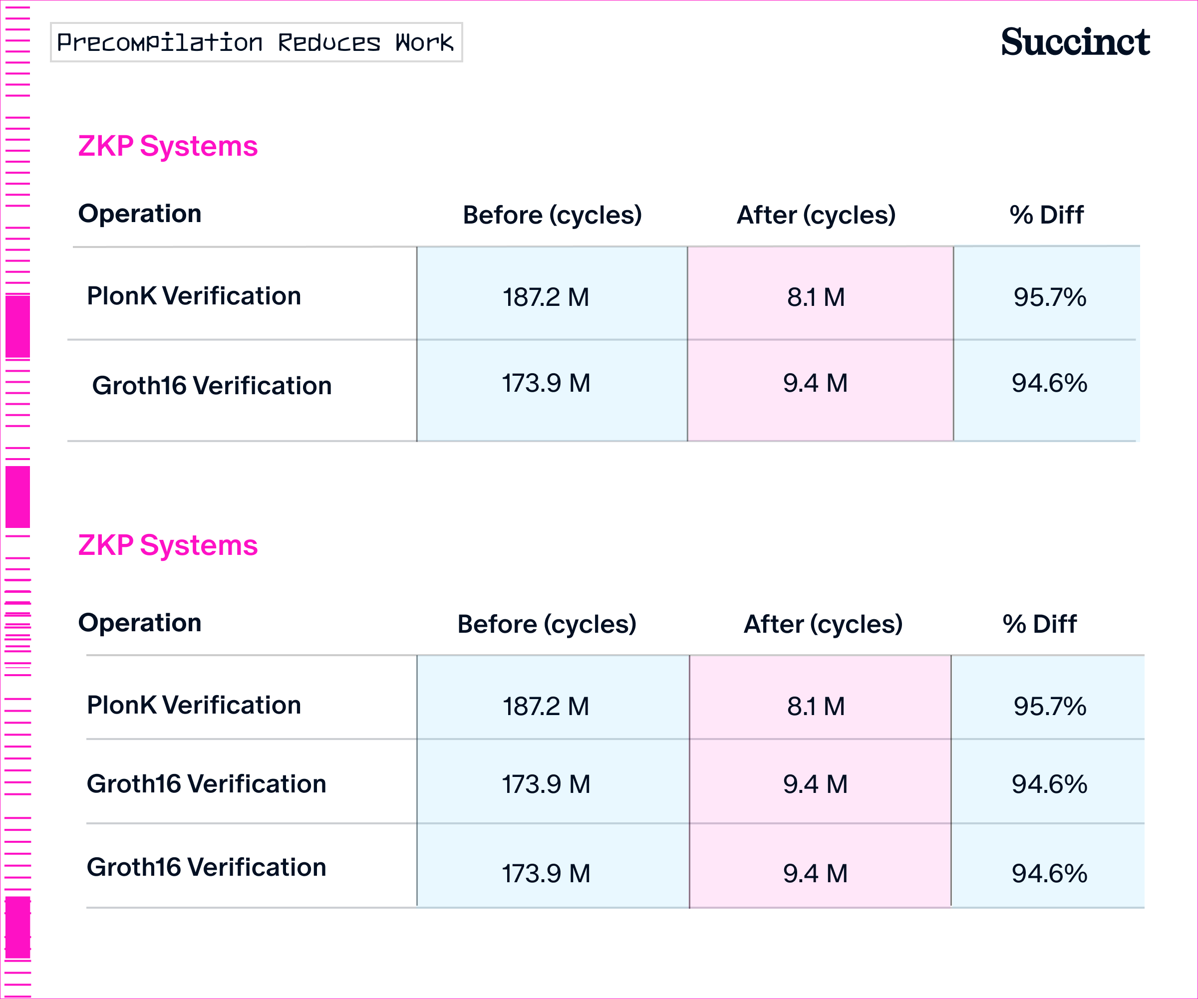 vApps can use precompiles for the zkVM to reduce the proving work required for common cryptographic operations by up to 95%, as shown in Figure 6. SP1 is already optimized with precompiles, which are pre-built circuits that accelerate proving for repetitive operations. Many apps require “general plumbing” work: recovering account data, initializing authenticated databases, and doing state reads and writes. Already, SP1 uses the ECDSA recovery precompile to accelerate account recovery in Ethereum proving. Precompiles can accelerate proof generation for vApps.
